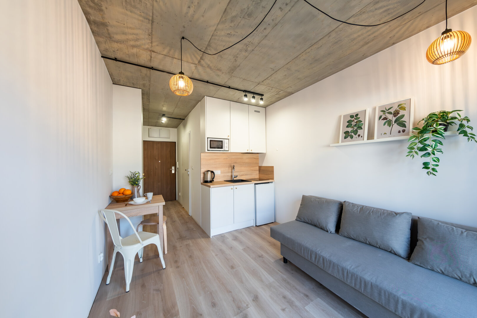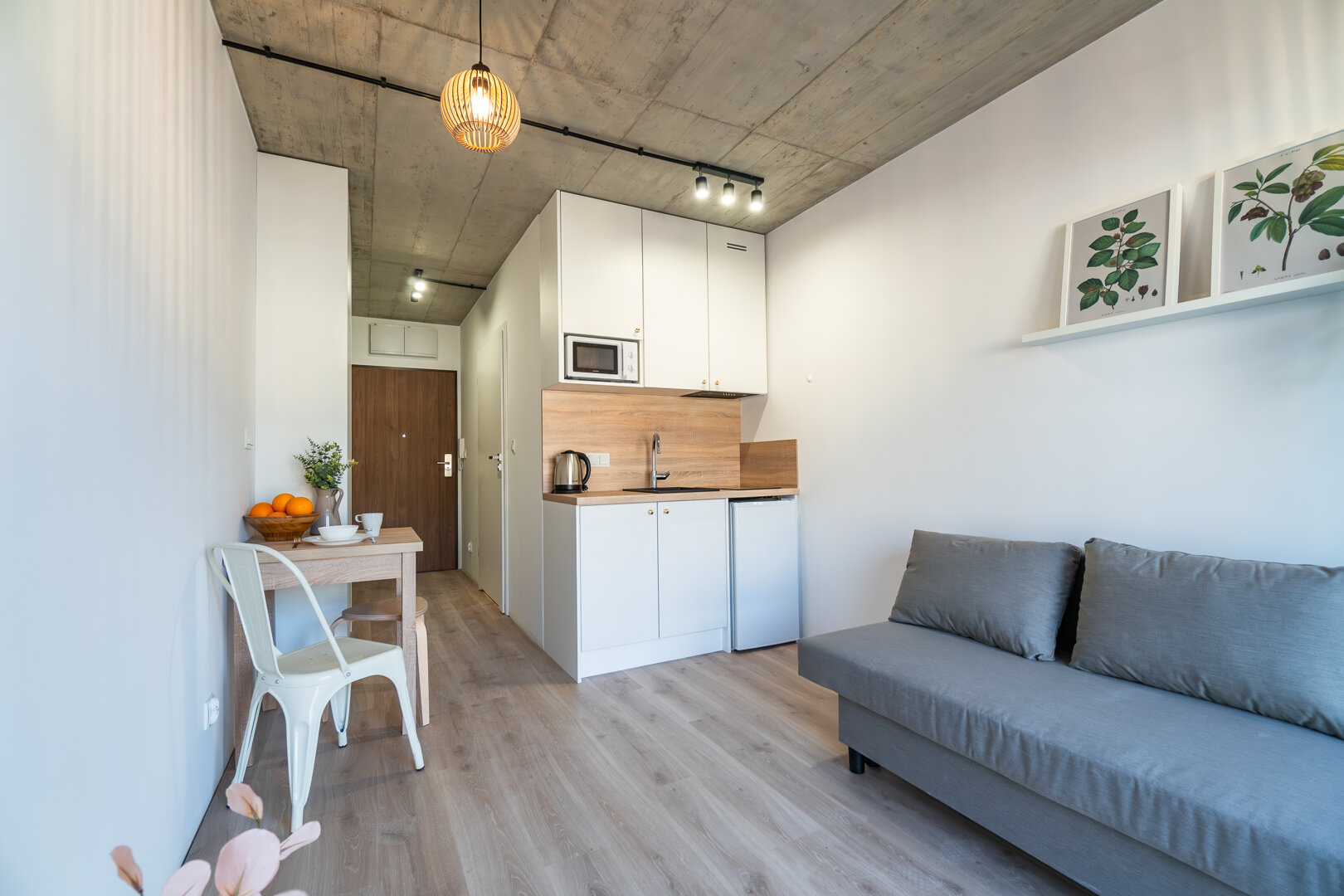 Dwuosobowy wygodny i funkcjonalny lokal z łazienką, aneksem kuchennym i balkonem.